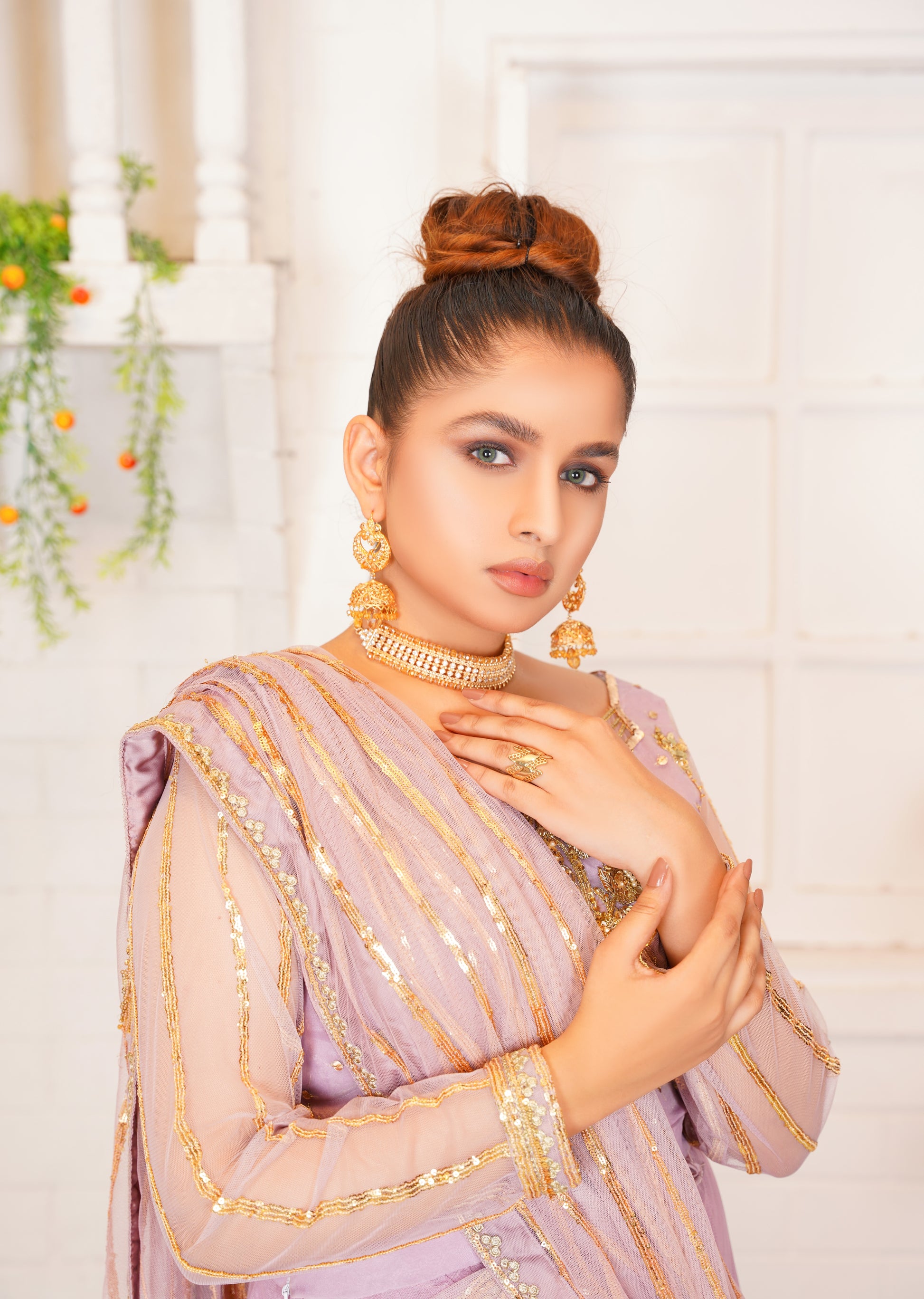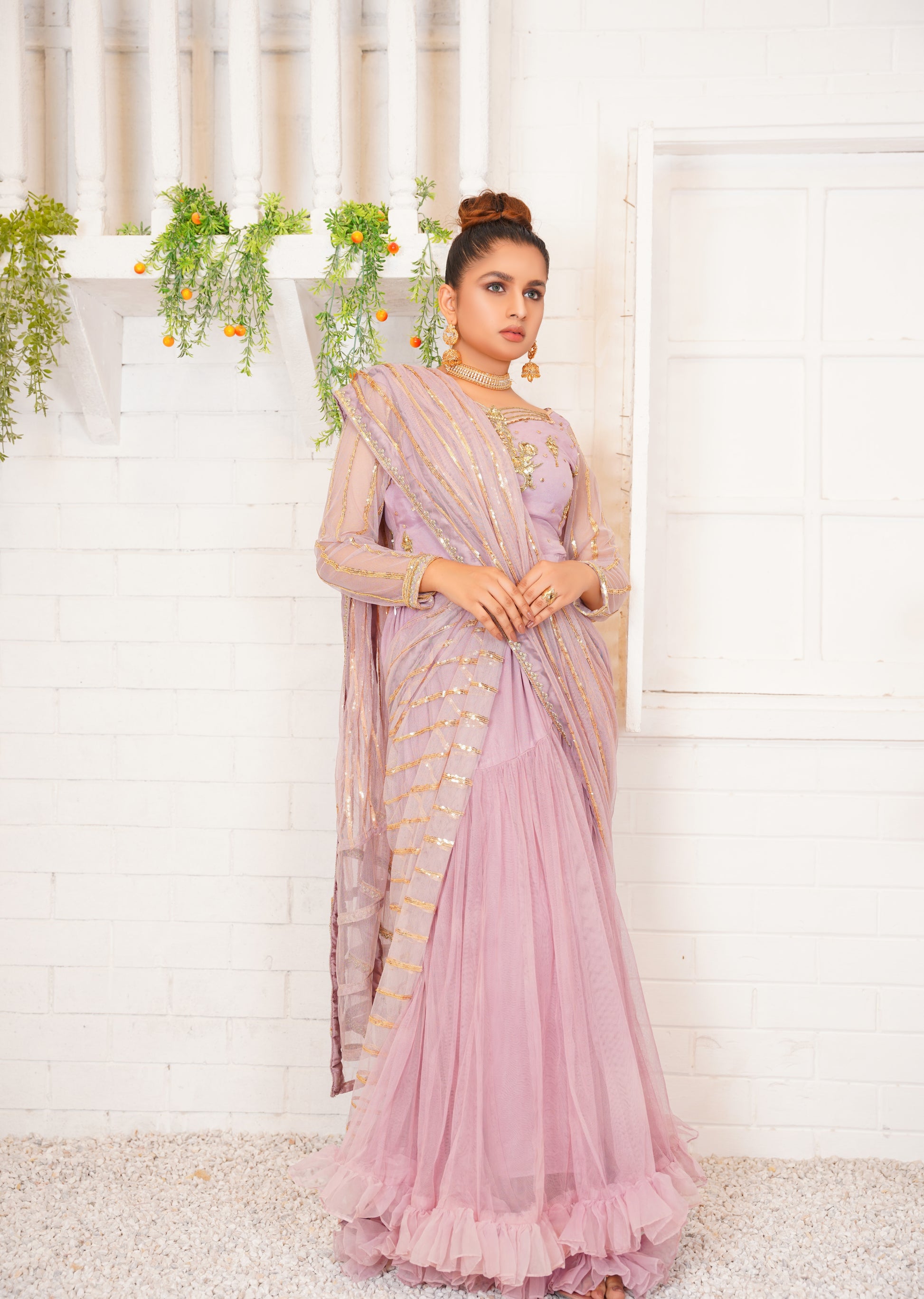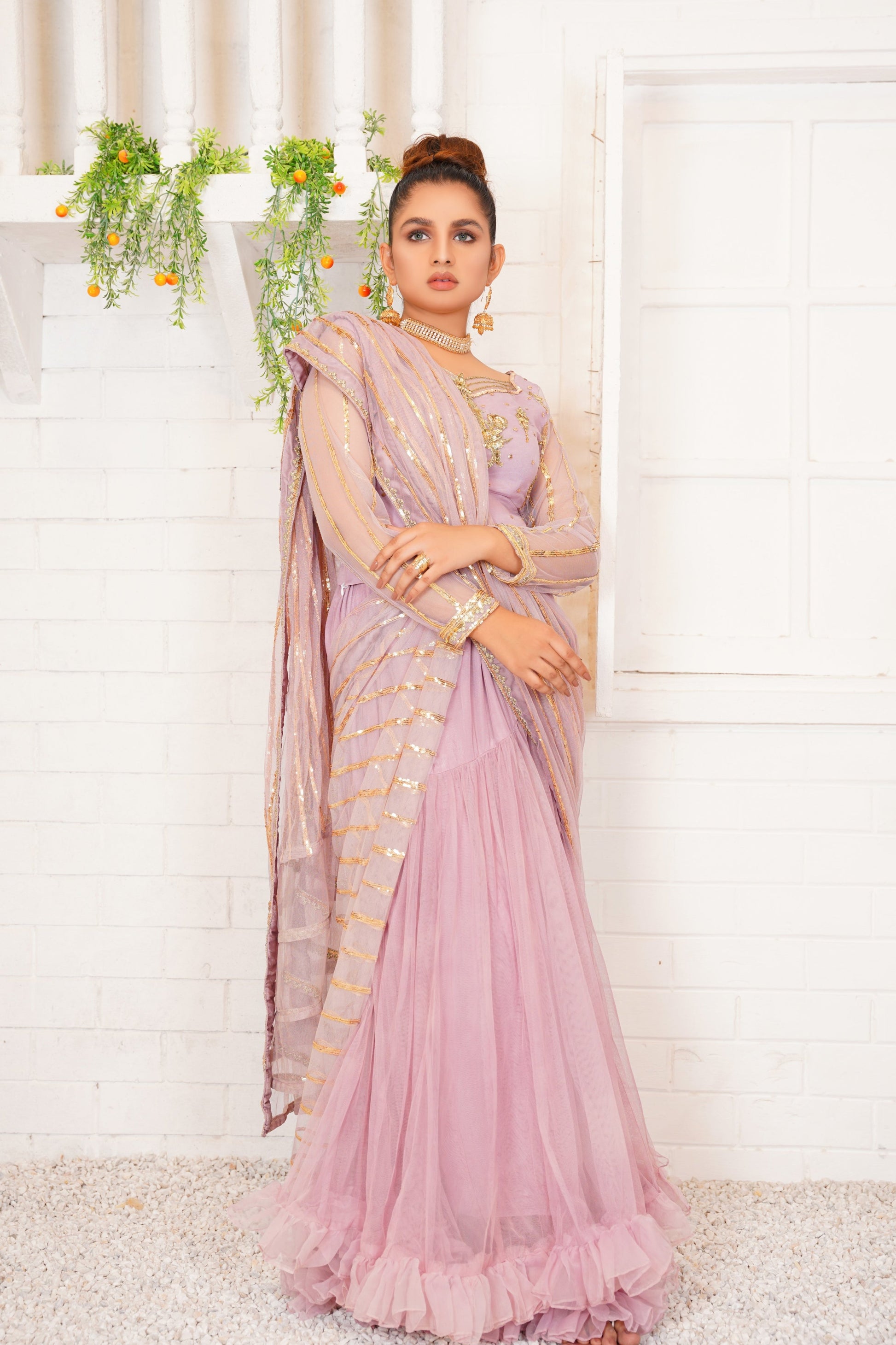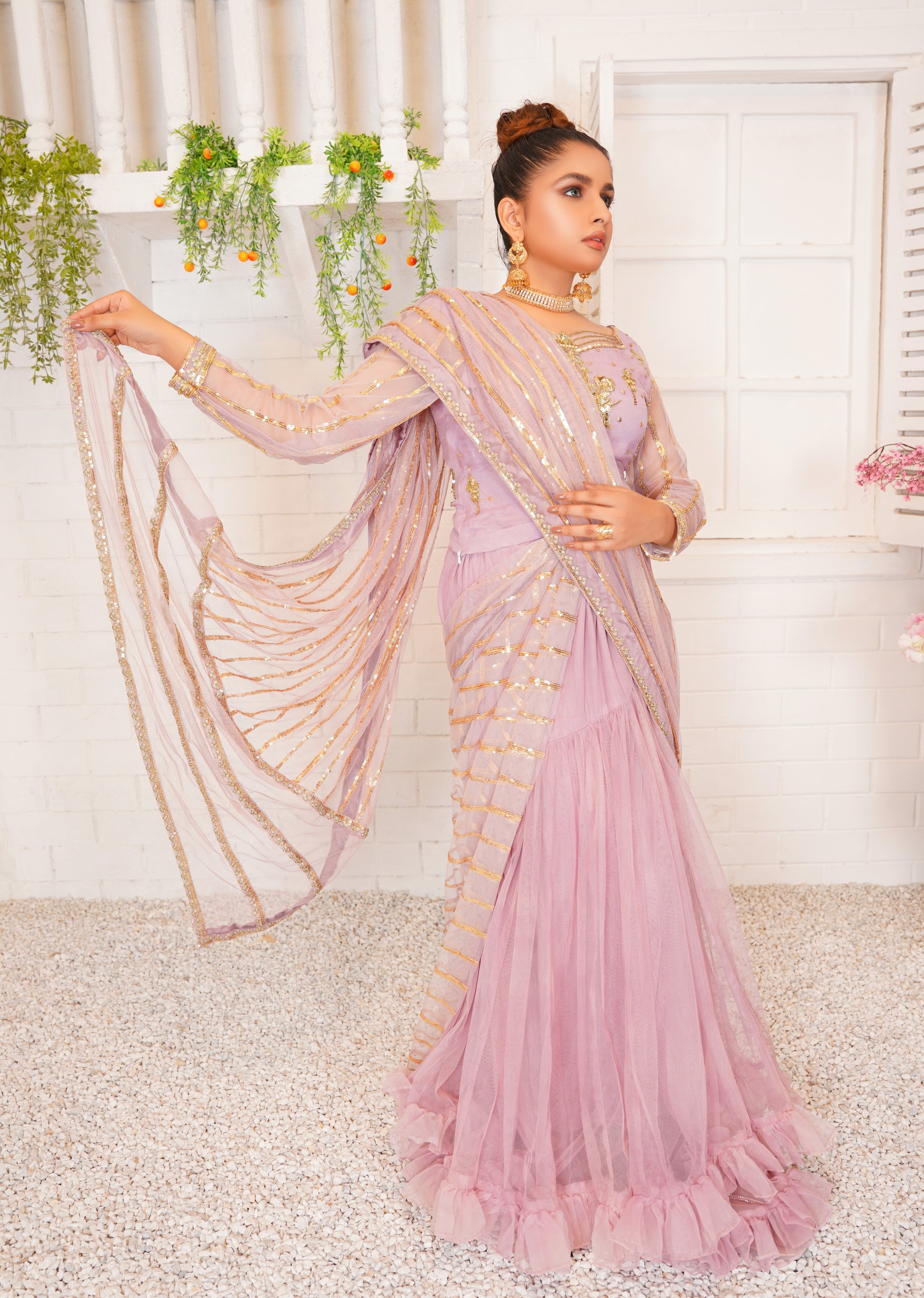 Aamani - Modern Yet ethenic! This Refreshing Liliac lehnga cum Sarhee is must have for this festive season. Intricate handwork on blouse and sequin work on drape is making this outfit just finery.
