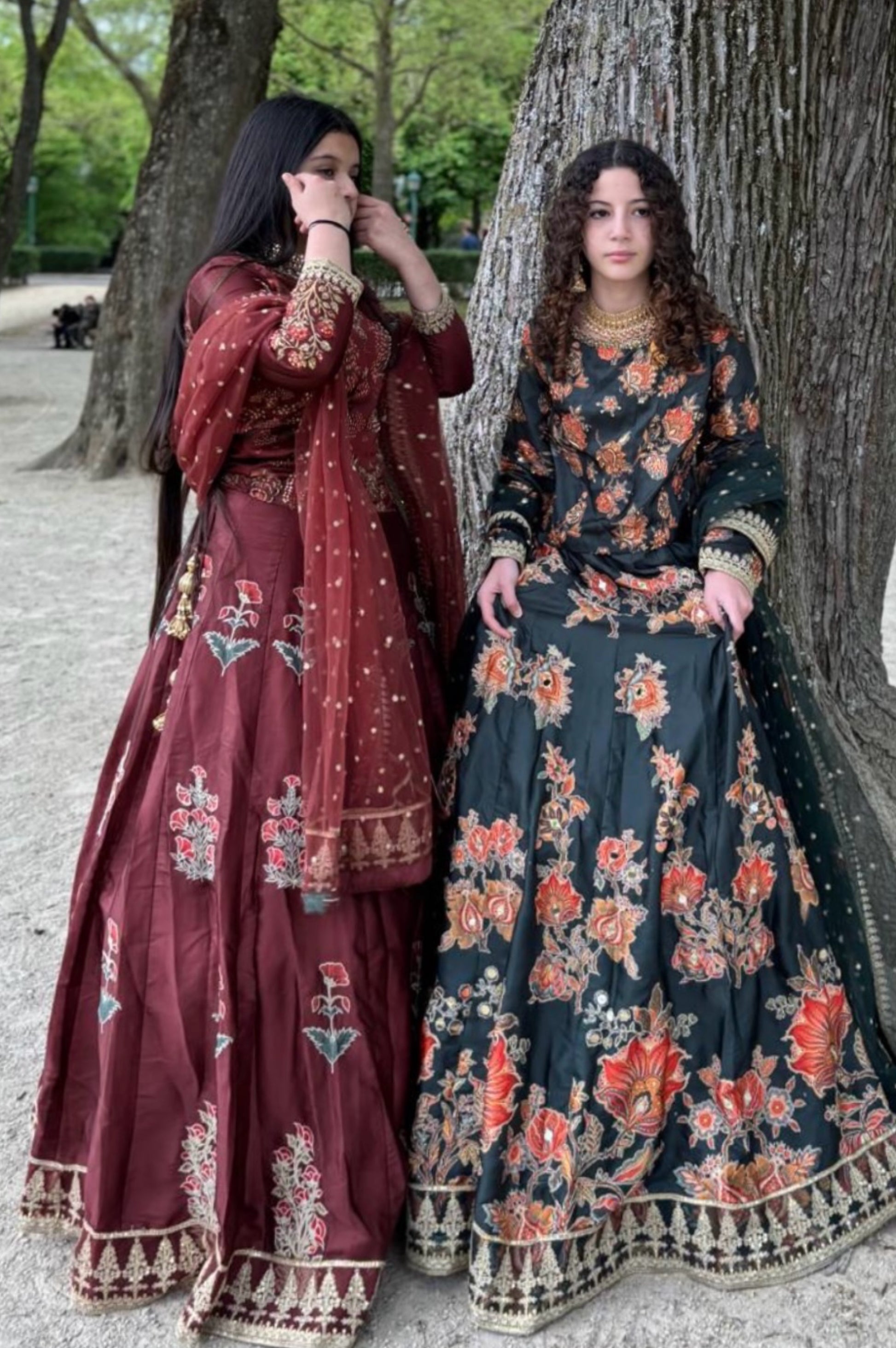 Our signature Classic styled Deep Red digital printed Lehnga choli. Embellished canvas with sitara, dabka, naqshi and pearls. Paired with embellished Net duppta giving it a royal Look.