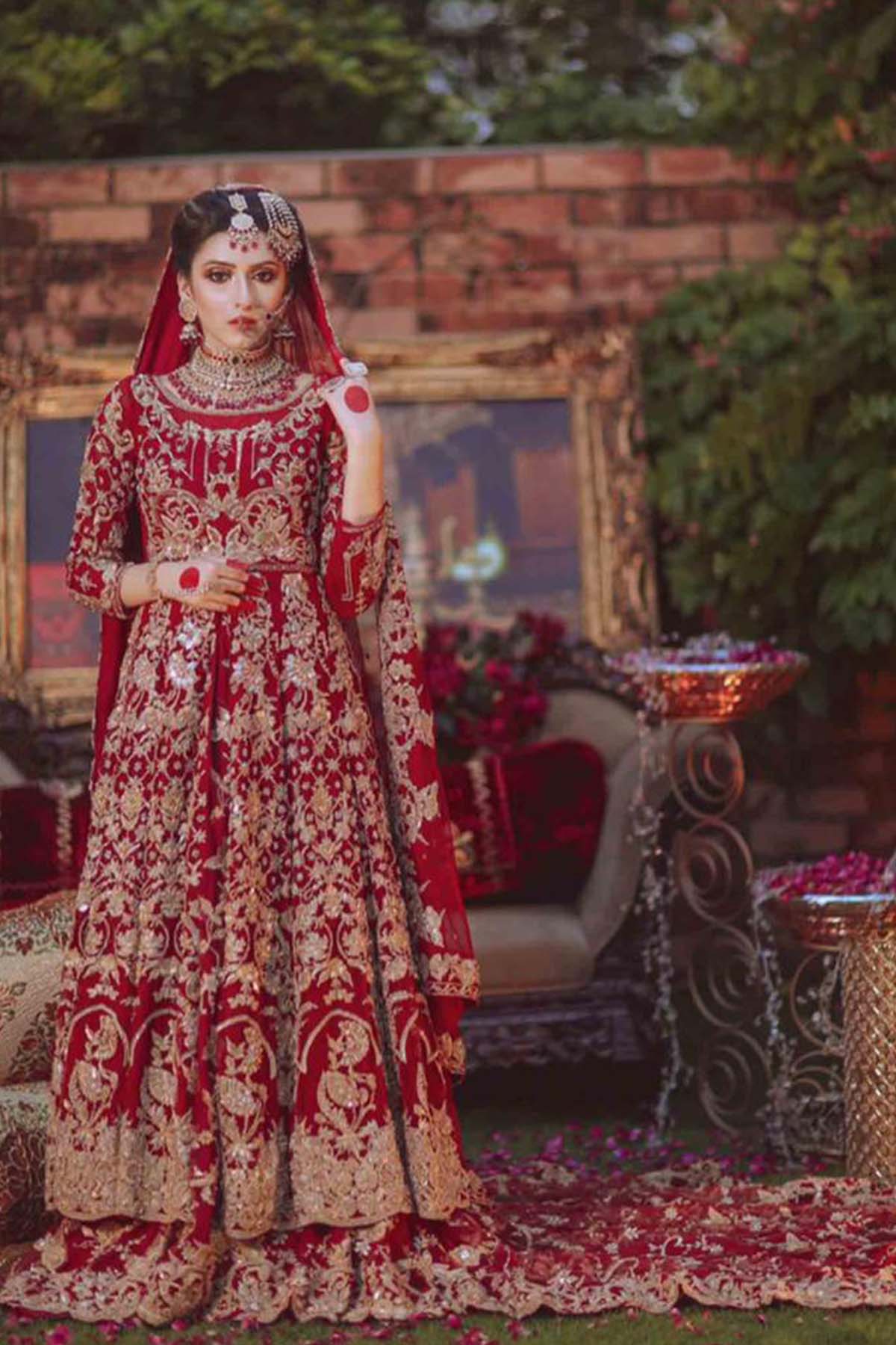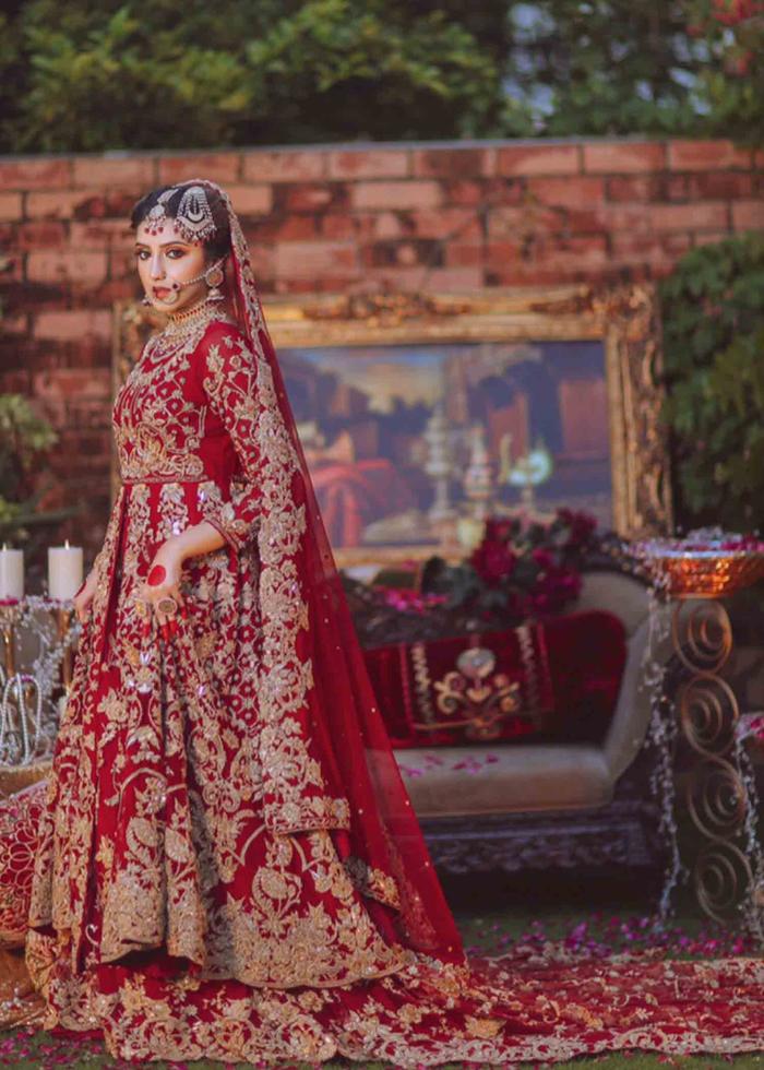 Signature bridal attire, lehnga choli embellished with tilla, sequins, kora, dabka, naqshi, pearls and diamonties. Korean net dopata embellished with four side boader. . Its master pick for your big day.