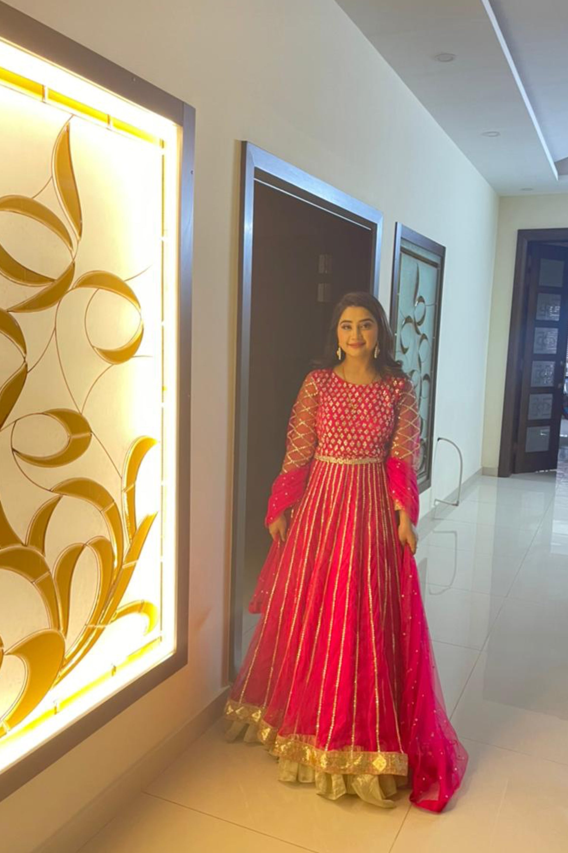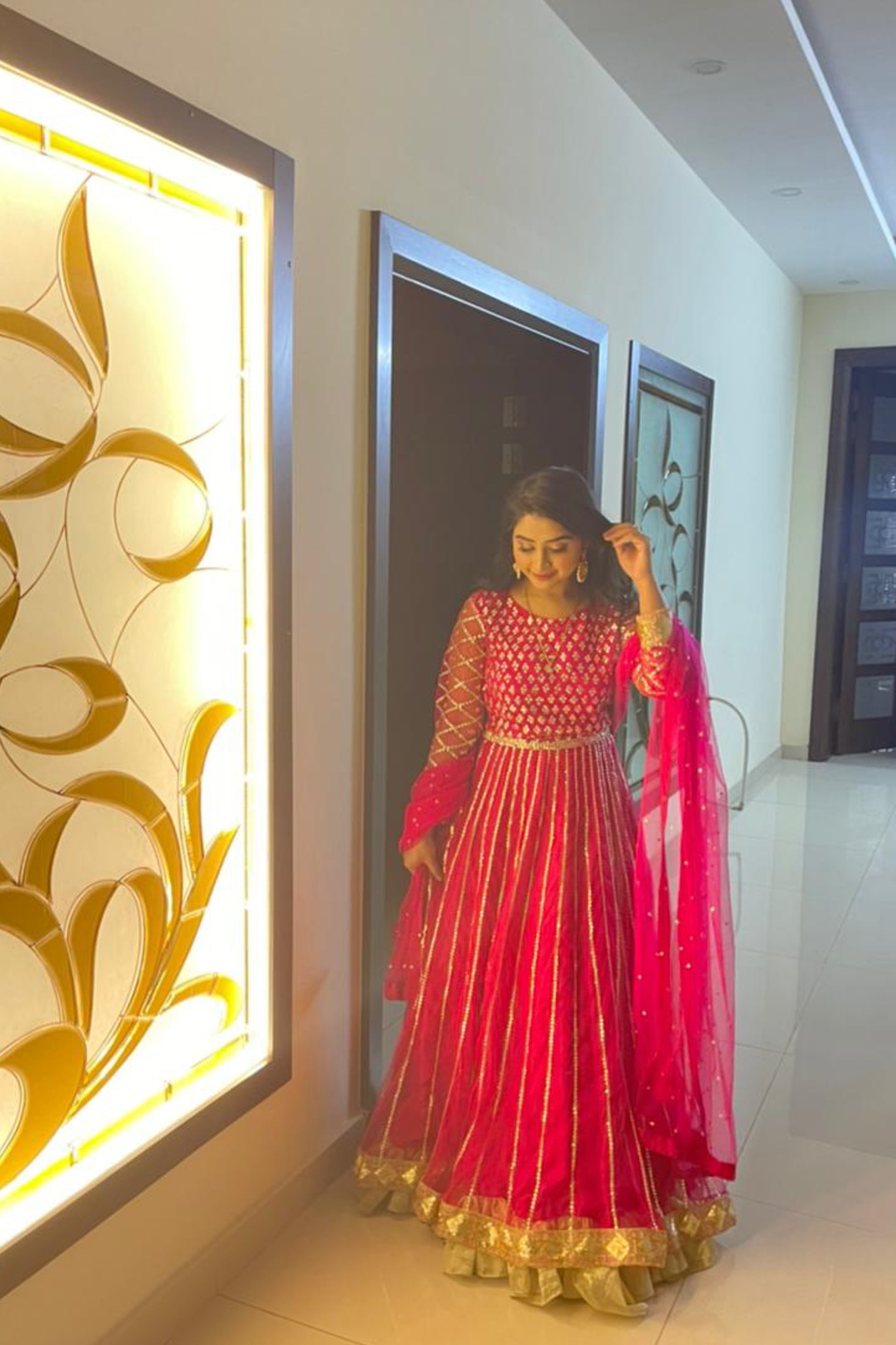Chandermukhi - Glory of our signature pishwas, that exude luxury, finesse and evoke the sense and mind towards visions of regal mastery. Hand embellished with sequins. And beautifully tailored to step up your festive look.