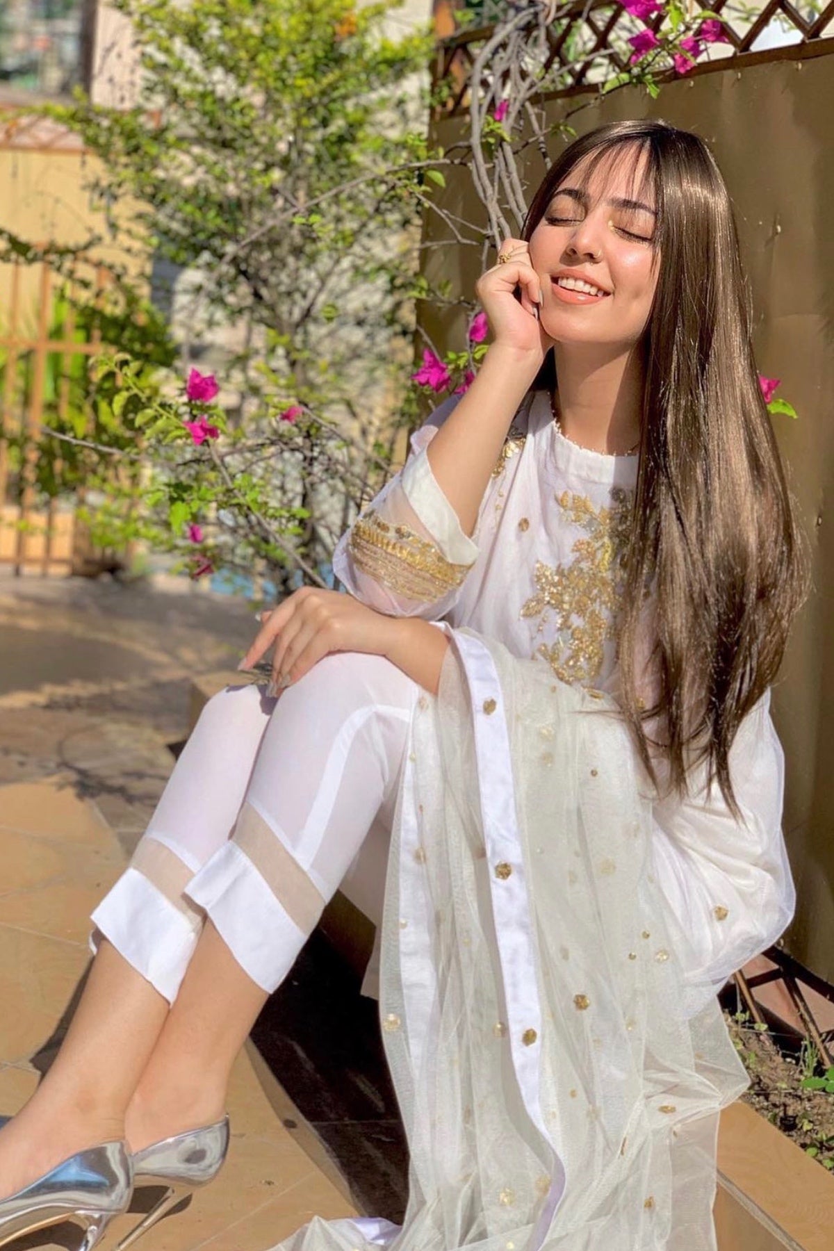 The sleek and straight cut are beautifully complimented by lavish zardozi and gotta work and coincide with luxe gotta dopta and straight pants.